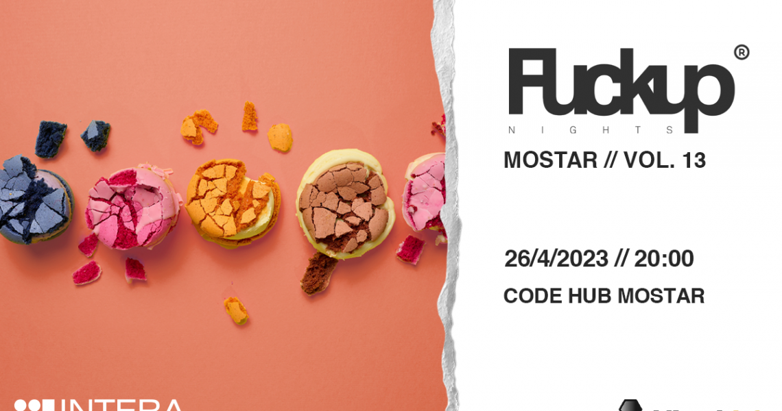 Fuckup Nights Mostar Vol. 13 održat će se u srijedu, 26.4.2023. godine.