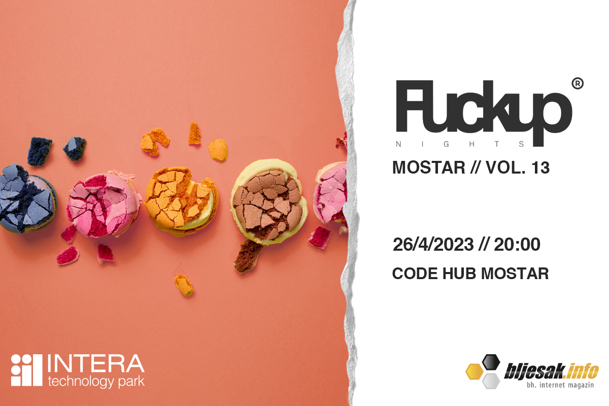 Naime, Fuckup Nights Mostar Vol. 13 održat će se u srijedu, 26.4.2023. godine s početkom u 20h u Code Hub-u Mostar. I ovog će puta okupiti uspješne ljude iz Bosne i Hercegovine koji će svojim primjerom pokazati da se do uspjeha ne može doći bez grešaka, ali da je o tim greškama sasvim u redu javno govoriti. Prva će svoju priču s publikom podijeliti Najra Krvavac Perišin, stručnjakinja za komunikacije koja radi u Sarajevu, a trudi se živjeti na Korčuli. Iza sebe ima više od 30 godina profesionalnog iskustva koje je rezultiralo i suvlasništvom agencije za strateške komunikacije. Nakon Najre, o svojim neuspjesima će pričati Senad Alibegović, još jedan stručnjak za komunikacije, branding i medije. Zaposlen je u globalnom poduzeću Authority Partners kao Global Employer Brand Manager. Doktorski je kandidat na Fakultetu za komunikacije Univerziteta u Beču, a koncept Fuckup Nights-a dobro poznaje budući da je i sam organizator ovih događaja u Sarajevu i Zenici. Senada će na ovoj pozornici „naslijediti“ Jovana Marković-Vidaković, diplomirana politologinja koja je veći dio svoje karijere provela na vodećim pozicijama u sektoru marketinga. Prije nekoliko godina napravila je svojevrsni zaokret u karijeri i danas uspješno plovi vodama prodaje u poduzeću Oracle.