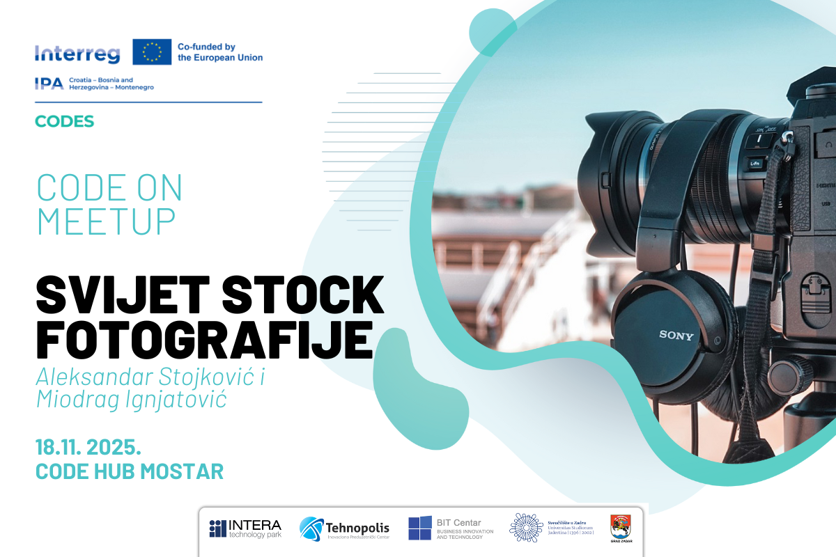Ulaz je slobodan! Pridruži nam se 18. 11. 2025. u 18:00 u Code Hubu Mostar. Prijaviti se možete na linku: Code On Meetup vol. 40: Svijet stock fotografije – Ispunite obrazac