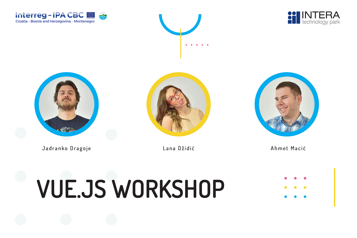 Vue.js jedan je od najpopularnijih i najmoćnijih JavaScript framework-a s kojima se može raditi gotovo sve – od najjednostavnijih stranica do kompleksnih web aplikacija. Upravo ovom framework-u će biti posvećena besplatna obuka JavaScript Framework koja se organizira kroz projekt CODE sufinanciran sredstvima EFRR i IPA II fondova Europske unije i Federalnog ministarstva razvoja, poduzetništva i obrta. Obuka, koja će se održati u prostorijama INTERA Tehnološkog Parka od ponedjeljka, 2.12. do srijede, 4.12.2019. godine, polaznike će upoznati sa svim osnovama ovog framework-a te s nekim naprednijim konceptima. Predavač Jadranko Dragoje uz pomoć kolega Lane Džidić i Ahmeta Macića polaznike će provesti kroz razvoj manjeg news portala čime će oni steći praktična znanja koja lako mogu primijeniti u svom budućem poslu.