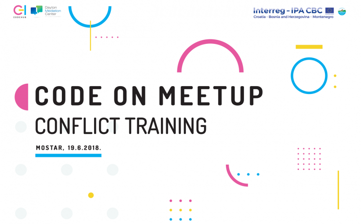 U utorak, 19.6.2018. godine u 11h u Code Hub-u Mostar će se održati Code On Meetup Vol. 4: Conflict Training koji će voditi Arch Grieve, stručnjak iz Dayton Mediation Center koji se već godinama bave ovom problematikom u Sjedinjenim Američkim Državama.