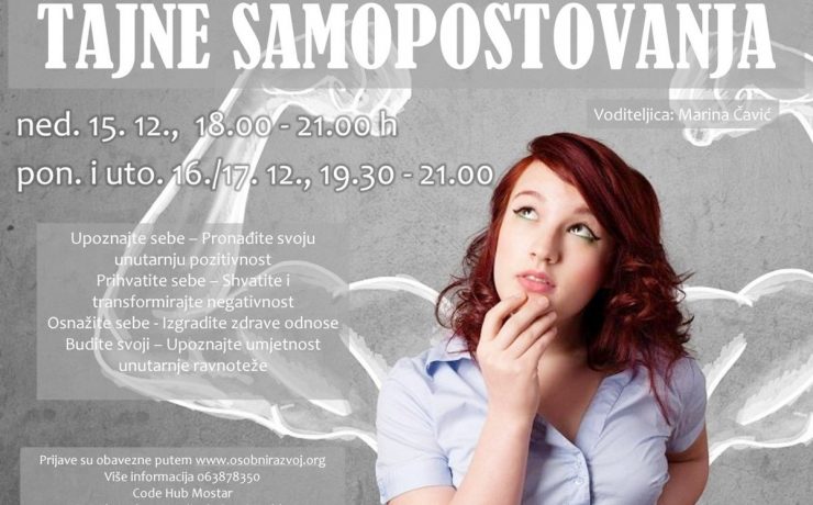 U Code Hub-u Mostar sredinom prosinca održat će se trodnevni tečaj samopoštovanja.